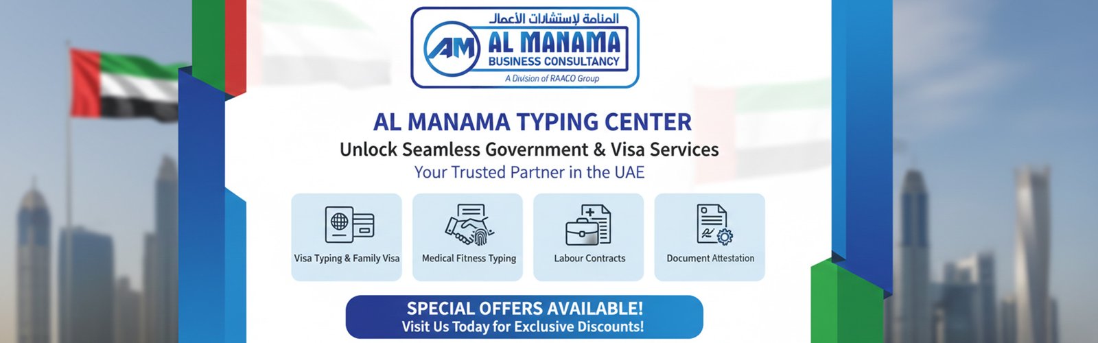 EXCELLENT Based on 545 reviews Posted on Hussam AliTrustindex verifies that the original source of the review is Google. Jamsheena is very good and supports a lot & trust person .Posted on Baskar DTrustindex verifies that the original source of the review is Google. ⭐⭐⭐⭐⭐ I had an excellent experience with Al Manama Typing. The service was fast, accurate, and very professional. A special thanks to Shahul for his outstanding support—he was extremely helpful, patient, and ensured everything was completed smoothly and on time. Truly the best service I’ve received. Highly recommend.Posted on Mudassir KhanTrustindex verifies that the original source of the review is Google. I contacted Jamsheena in manama typing center for visa application new and renew of my three children and wife she is very helping and made my work very easy and quick, as i am very busy in office and had no time. she did it for me. She provided me great service amd kept me updated of every process and status of my applications. i am fully satisfied and recommend to take her service.Posted on navin gomezTrustindex verifies that the original source of the review is Google. Nothing else to be said other than excellent work by the team. Been having a fantastic service from them for the past many years. Hats off to Fazal and team for the great support. This time I had top class service from Shahul. The knowledge which each and every staff have is really sooperb.. great job guys.. Thanks..Posted on Ahammed RinshadTrustindex verifies that the original source of the review is Google. We recently booked our Musandam trip through Darshana, and it was an amazing experience from start to finish. She was incredibly friendly, professional, and made sure everything went smoothly. Her constant follow ups and genuine care really stood out. Even after the trip, she checked in to make sure we were fully satisfied. We truly appreciated the exceptional customer service and the memorable experience. Highly recommended!Posted on Sruthi s kumarTrustindex verifies that the original source of the review is Google. I'm thrilled to share my amazing experience with Al Manama Travels! We recently won a giveaway for their Musandam trip on 2nd December 2025, and it turned out to be an unforgettable adventure! From the moment we embarked on the journey, we knew we were in for a treat. The scenic views, the comfortable transportation, and the warm hospitality – everything was top-notch! Our guide was knowledgeable, friendly, and made sure we had a blast exploring the stunning landscapes of Musandam. The service was UNEXEMPLARY (yes, that's a word I'm using to describe it!) – attentive, efficient, and personalized because I was travelling with my 3 year toddler.They took care of every detail, allowing us to focus on soaking in the natural beauty and making memories with our loved ones. Kudos to Al Manama Travels for an exceptional experience! If you're looking for a trusted travel partner, look no further. Can't wait for the next adventure! 🚗💕Posted on Aji KumarTrustindex verifies that the original source of the review is Google. I would like to tell Al Manama Typing Center provided me with a very reasonable service in a very short time regarding obtaining a Golden Visa for me and my family. I would like to express my special appreciation to the entire team at Al Manama, especially Mr. Shahul. Their involvement and the service we receive are unmatched anywhere else in Ajman. Al Manama Typing Center is a trusted institution for all our visa, insurance and medical needs. I would like to express my heartfelt gratitude and prayers to all the staff there.Posted on Ali Ahmed 1234Trustindex verifies that the original source of the review is Google. Mr aseem helped me to my dependence visa so quickly & smoothly, thanks for the service 😊
